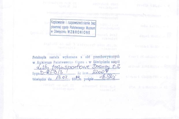 Origine du document: Archives du camp de concentration d'Auschwitz