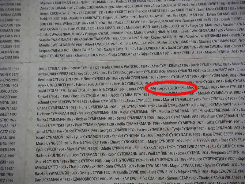 Mur des Noms - Mémorial de la Shoah - Paris