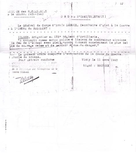 Au revers : la croix de guerre porte la mention " 1939-1945",