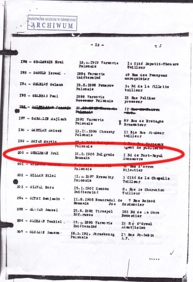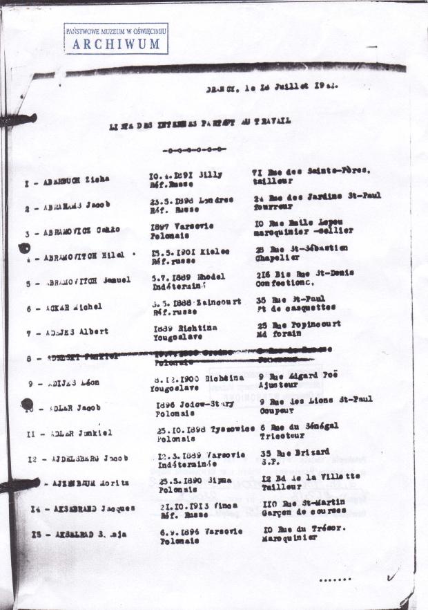 Origine du document: Archives du camp de concentration d'Auschwitz
